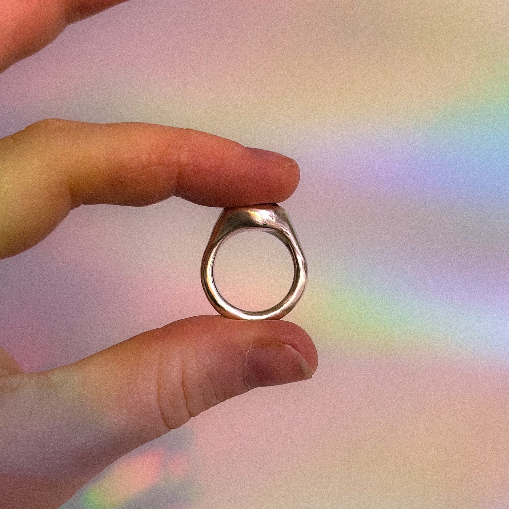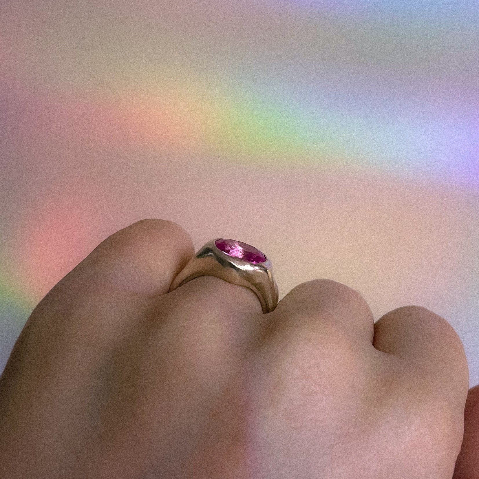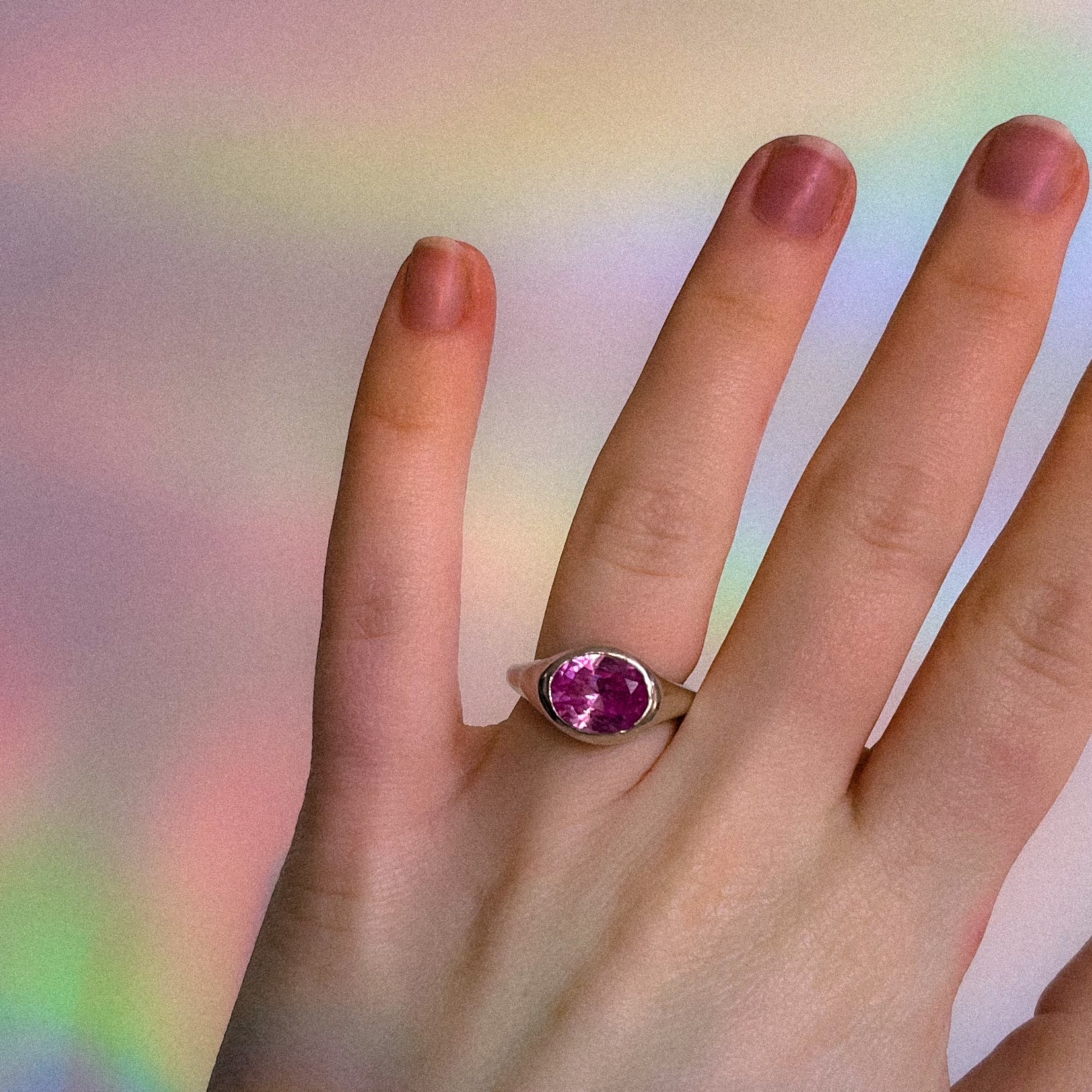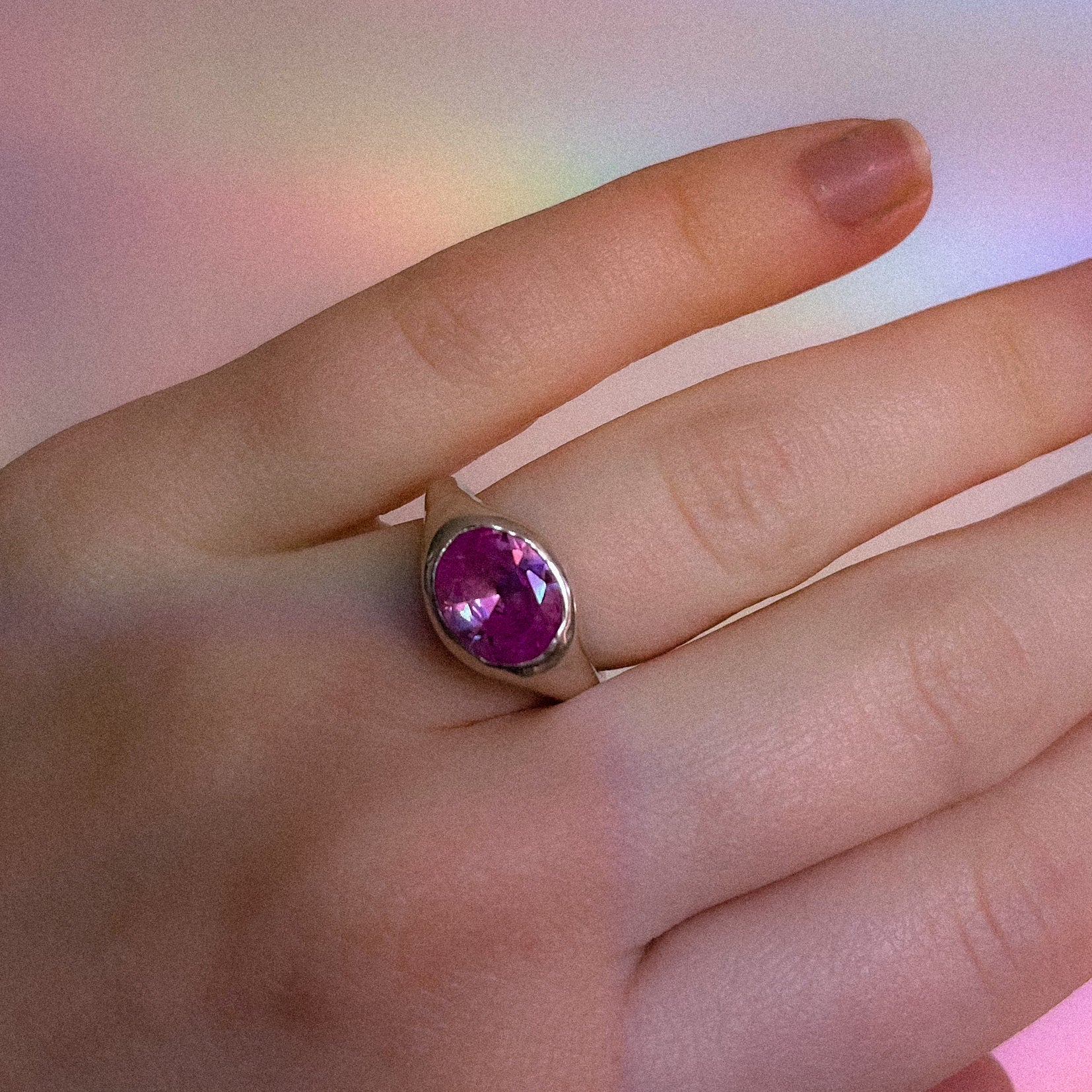 One of a kind sterling silver ring in size UKJ (US5) with large lab grown pink sapphire and a rounded band