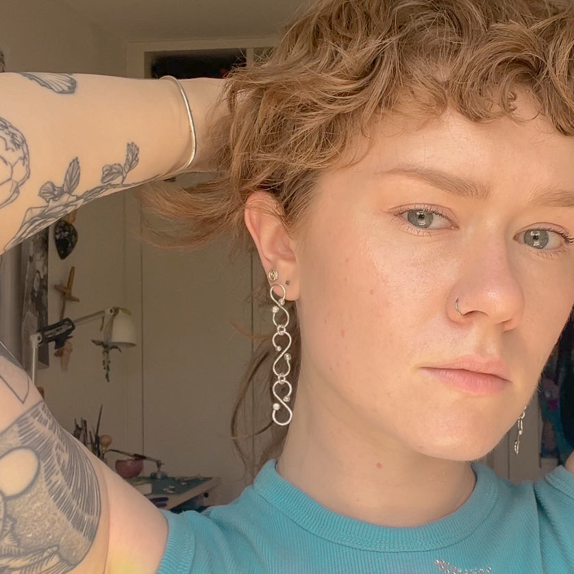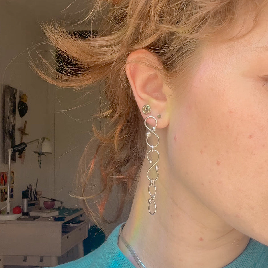 Sterling silver drop earrings with a mystic cz stone set in the bottom